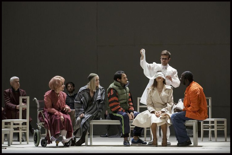 Dans un décor d’un blanc immaculé aux allures de salle d’attente aseptisée, clinique, douze éclopés de la vie se croisent et se mêlent dans un ballet âpre, rude et angoissé. Loin de verser dans le misérabilisme et le voyeurisme, Dea Loher, qui fait son entrée au répertoire de la Comédie Française par la grande porte – la salle Richelieu – , signe un texte, grinçant parfois, douloureux souvent, drôle à l’occasion, mais plein de tendresse et d’empathie sur la souffrance de notre monde moderne. Portée par des comédiens hors pairs – Danièle Lebrun et Cécile Brune en tête – , la pièce Innocence, mise en scène par le talentueux québécois Denis Marleau, interroge avec finesse et intelligence sur l’état de nos sociétés occidentales où l’humain a du mal à trouver sa place. Séduit on l’est assurément par ce travail d’orfèvre, même si quelques longueurs et pesanteurs gâchent un peu notre plaisir…
