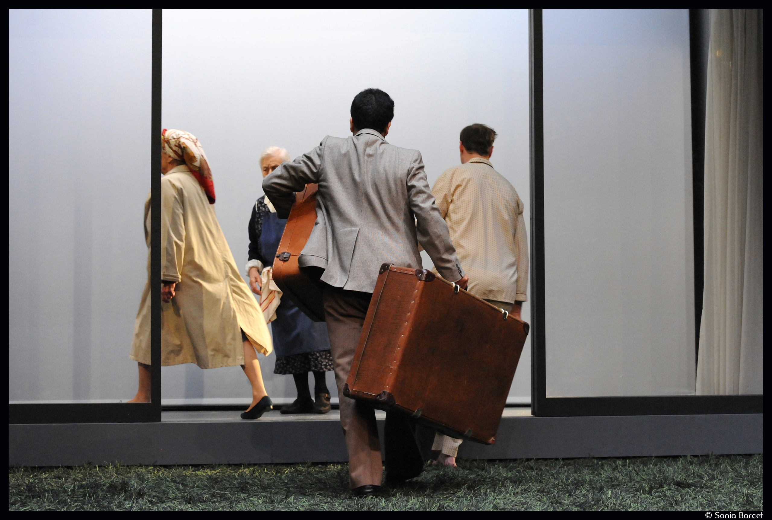 Dans cet univers aseptisé, une dame âgée s’affaire. Sa silhouette, telle une ombre chinoise, apparaît derrière des voilages couleur crème. Elle range, dépoussière, nettoie. C’est la gouvernante, madame Queuleu (excellente Isabelle Sadoyan). Avec Aziz (étonnant Kheireddine Lardjam), l’autre domestique, ils sont les seuls à s’agiter, à vivre. Trop longtemps au service de cette famille sclérosée, étrange, ils ont appris à subir, à laisser faire, à ne pas émettre d’opinion.