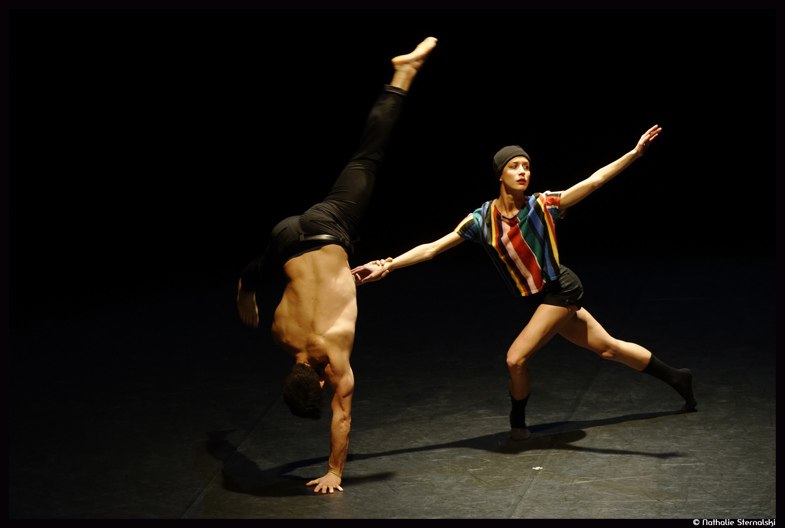 Après une courte pause, c’est un jeune homme (Tonin Sourjac) qui fait une entrée fracassante en Lolita sexy, en Betty Boop allumeuse, perchée sur des talons aiguilles vertigineux. Tee-shirt déstructuré, boxer noir, refusant la nomenclature des genres, il cristallise les regards, envoûte l’auditoire, conquis par cette prestation digne d’une Beyonce déchaînée. L’image est fugace, elle se retient un temps avant de céder sa place à un magnifique ballet, intitulé Traffffic, signé Dominique Boivin s’inspirant des culbutos de notre enfance. Suivant la ligne musicale ciselée, les danseurs se cherchent et se repoussent. Chacun impulsant d’un geste, le mouvement de l’autre. Cette vague humaine hypnotique ensorcelle. Totalement emporté par ces ondulations des corps, le public se laisse captiver, saisir, bouleverser.