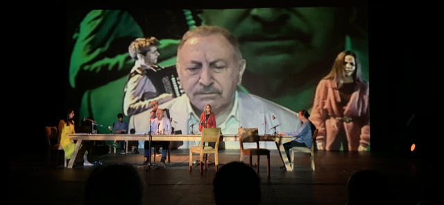 L’un après l’autre, Makram Khoury, Yael Abecassis, Clara Khoury et Amos Gitaï prennent la parole, lisent des extraits d’œuvres littéraires en hébreux, en arabe, en anglais, en polonais. La poésie de Mahmoud Darwich, celle de Wisława Szymboska s’entremêle avec la prose d’Yzhak Smilansky ou d’Albert Camus. Les mélodies orientales, la musicalité des langues, invitent à un beau voyage, lancinant, au cœur du conflit israélo-palestinien et de son absurdité.