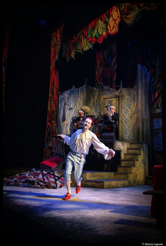 Jean Lambert-wild : Je crois que travailler le geste d’un clown blanc et ce qui me donne le plus d’opportunité d’exprimer mon identité poétique. C’est une figure que je travaille avec ma singularité. Elle s’est imposée à moi au fil du temps, lentement. Elle m’anime esthétiquement et artistiquement. Gramblanc est sorti de de la nuit, du puits des peurs qui traverse les âges. Catherine Lefeuvre en parle mieux que moi car elle l’a vu naitre et grandir. Elle m’écrit d’ailleurs des entrées Clownesques comme Coloris Vitalis ou Un Clown à la mer dont la sensibilité réveille toutes les expressions et frissons de Gramblanc. Dans Ubu Roi, que nous allons bientôt mettre en travail avec Lorenzo. Cédric Paga serait Le père Ubu et j’aurai le privilège de l’accompagner en mère Ubu. Gramblanc est un hôtel à fantômes, il a cette capacité de pouvoir se transformer au fil des pièces, de devenir autre, tout en gardant certaines de ses caractéristiques et énergies principales. Sur ce futur projet nous travaillerons avec des « drag queens » et des « drag kings », car dans leur manière de se transformer, ils affirment une vraie identité poétique dont le geste libre nous affranchi de toute morale. Pour moi, ils sont une lignée splendide des clowns blancs.