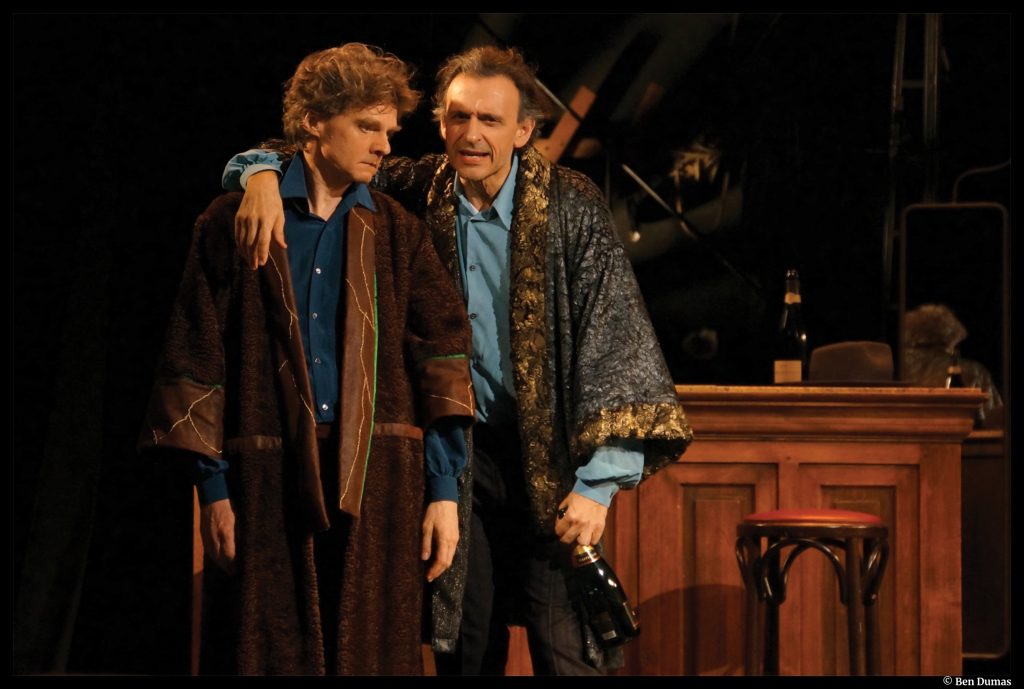 Plus on vieillit et plus on aime le personnage de Philinte, l’ami d’Alceste qui le protège et lui prodigue des conseils plus que sages. Qu’il est beau ce personnage. Laurent Natrella est formidable. Comme on aimerait l’avoir comme ami. Nathalie Boutefeu est Eliante, la gentille, la belle âme, cousine effacée de Célimène. Le duo Philinte-Eliante fonctionne très bien. Hélène Barillé, qui ne nous a pas convaincu, incarne Arsinoé, un rôle difficile qu’il n’est pas toujours aisé d’interpréter. Dans les petits marquis, Arthur Sonhador et Raphaël Duléry sortent des sentiers battus des pédants et nous offrent une interprétation assez originale. Pierre Vial, dans le rôle du mauvais rimeur et « protecteur » de Célimène, nous offre une excellente composition. Ici ce n’est pas un orgueilleux imbu de lui-même, mais un homme profondément blessé par les propos d’Alceste à l’égard de ses vers. Et puis, il y a la charmante Clara Artur Vaude qui passe avec une belle aisance du personnage de Basque à celui de Dubois, les valets des deux amants contrariés.
