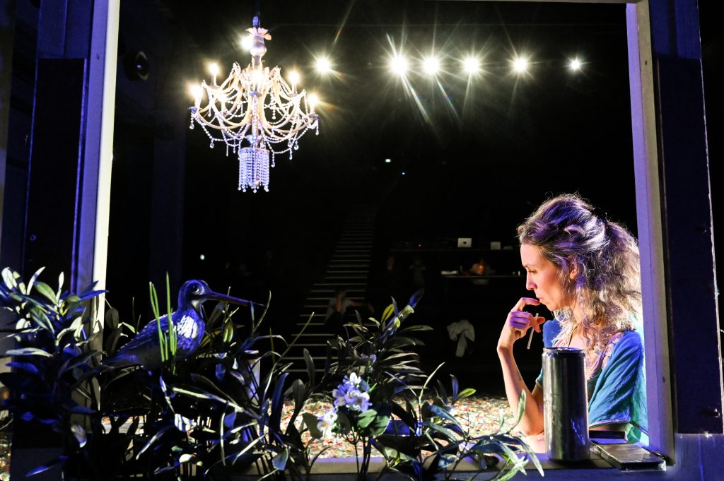 Sophie Lebrun donne de la chair, du relief et de la nuance à ce personnage exubérant par un jeu d’une grande sensibilité. Il semble qu’après chacune de ses gesticulations, Anna pourrait tomber. Et c’est là le tour de force de cette pièce, laisser penser que c’est avec son humour mordant qu’elle entend nous saisir alors que dans ce jeu d’équilibriste au bord du gouffre, ce qu’il faut, en fait, c’est se préparer au vertige.