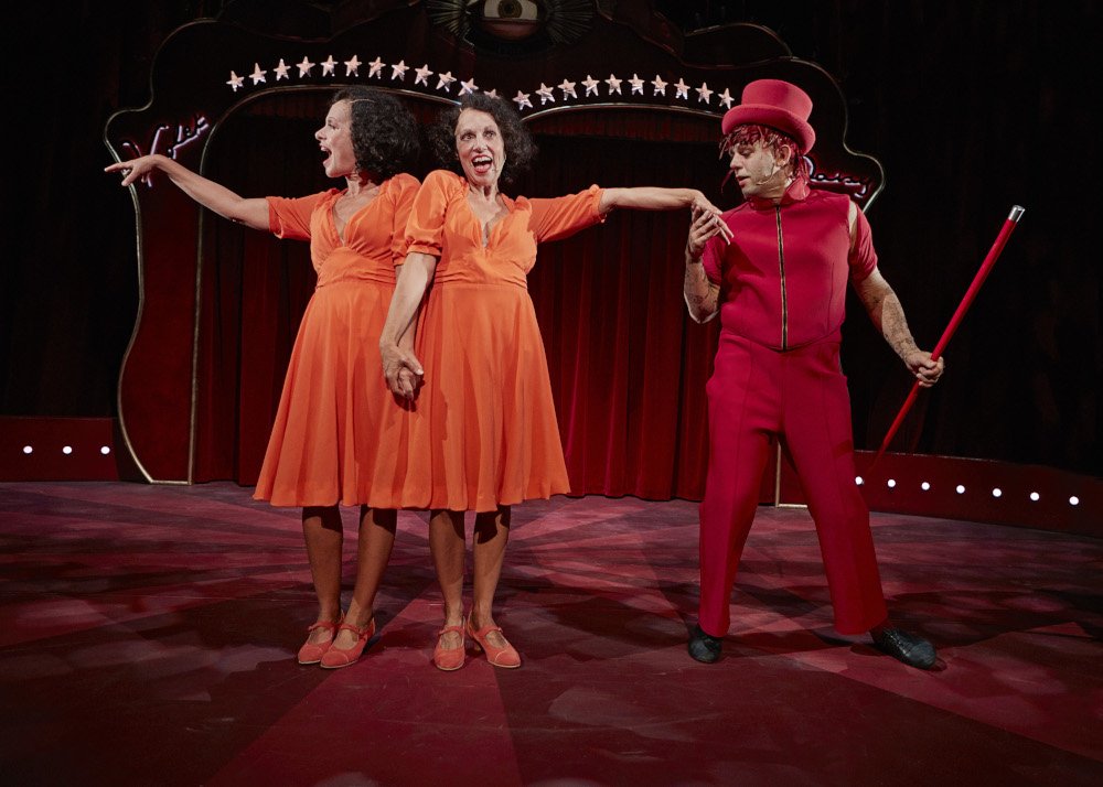 L’écriture rejoint alors la dynamique travaillée par la scénographie de Vanessa Sannino et la partition technique complexe qui se développe avec fluidité du début à la fin. Si la pièce doit encore trouver son rythme de croisière et s’assumer pleinement dans son extravagance, tous les éléments sont déjà là pour faire des Sœurs Hilton une pièce de curiosité et d’émerveillement. Et bien que le récit personnel de Daisy et Violet finisse, dans la forme, par s’estomper derrière l’esthétique freak particulièrement prononcée, Christian Hecq et Valérie Lesort restent pleinement dans leur sujet en donnant vie à leurs excentricités et aux images enchanteresses qui forment leur identité.