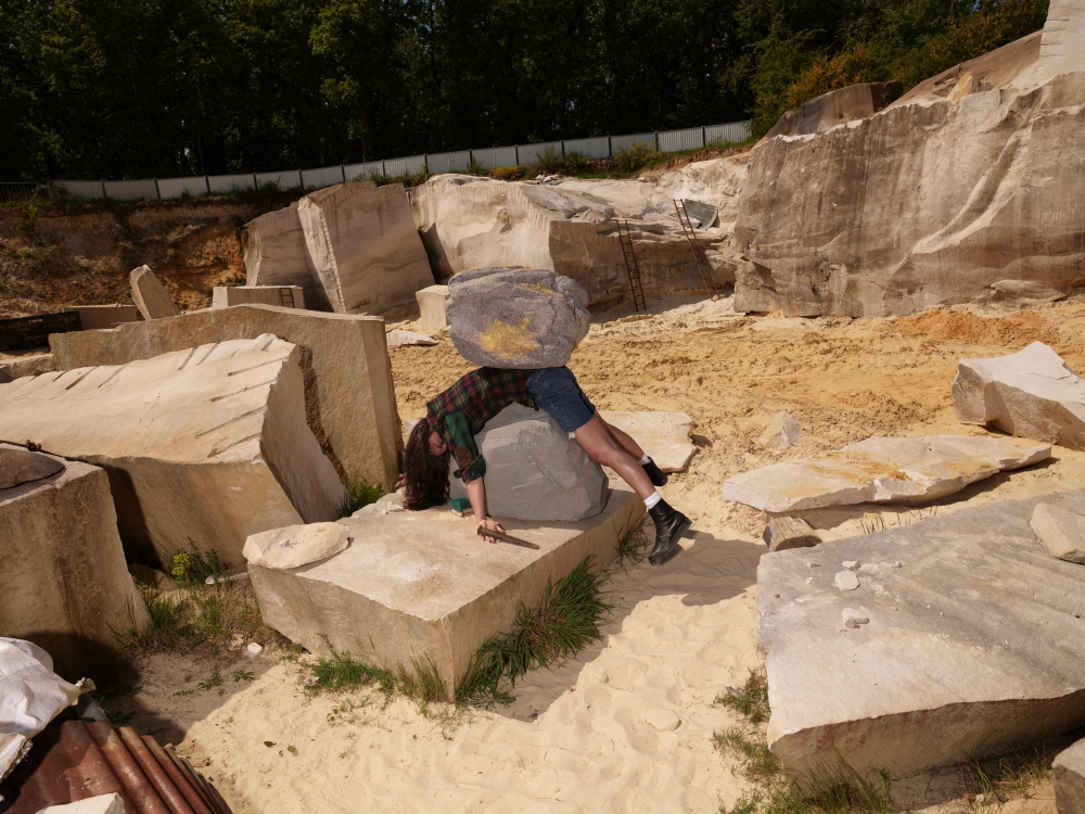 Le corps incapacité, encore en recherche de verticalité, elle sculpte son souffle pour instiller un rythme, une musique, un régime d’attention. Dans ce premier tableau de Honda Romance se dessine alors un duo femme-machine, une quête d’équilibre en défi à la gravité et à la résistance physique.