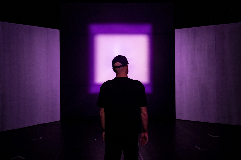 Des images-couleurs, flashs de vies qui apparaissent au gré du mouvement des surfaces de projection qui dansent dans l’espace, glissent sur le sol et descendent des cintres. Presque sur nos têtes. Parce qu’une chose est importante à dire : le public est le seul comédien de la pièce, qui se tient assis sur la scène du théâtre de l’Odéon. Face aux écrans, sortes de frontières qui le protège de la salle.
